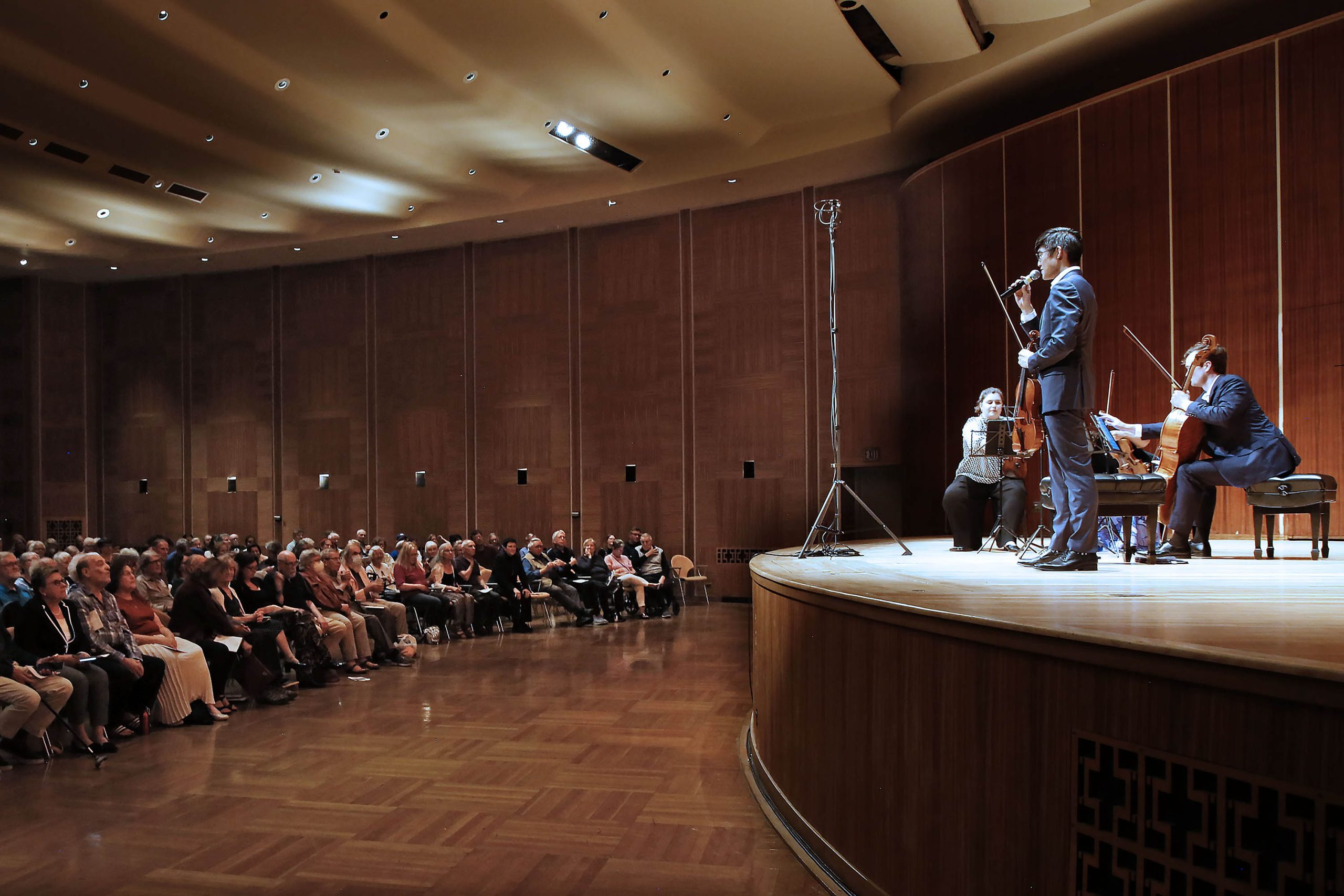 As you settle into your seat, it is irresistible to imagine the artists who have performed in this room, as part of this series. In 1957, 950 fans crowded the room to see guitarist Andras Segovia. Flutist Jean-Pierre Rampal played here. And the violinist Gil Shaham.