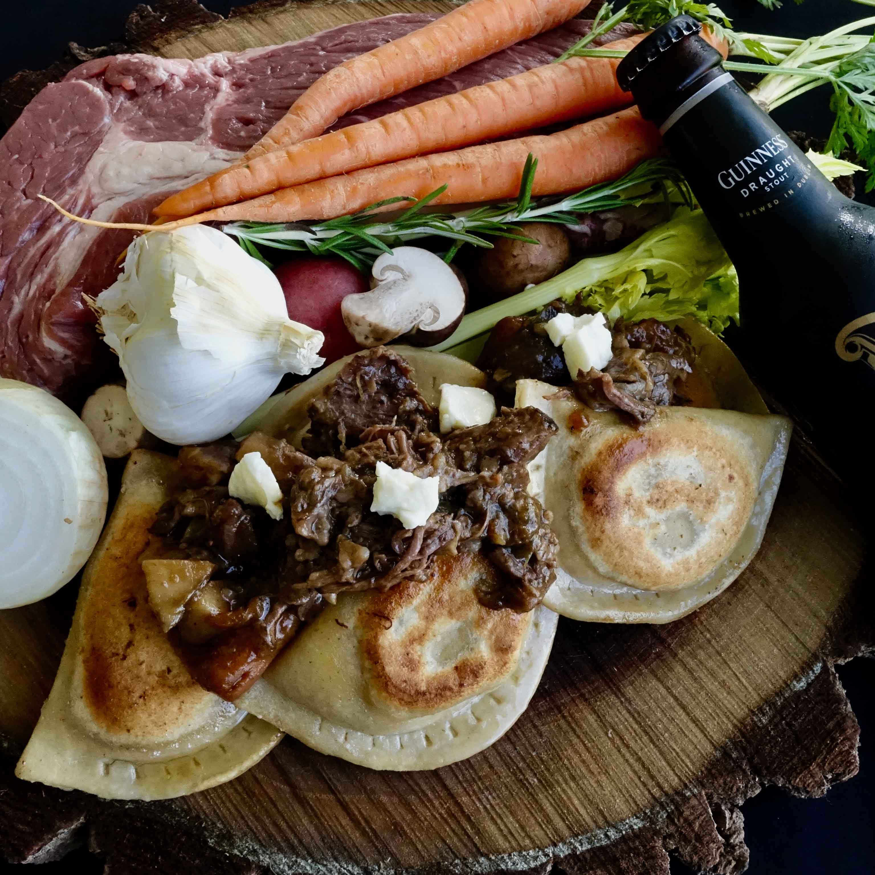 Every year Babcia’s Pierogi create unusual flavors that always work perfectly. This year they’re doing a potato cheddar pierogi topped with cheese curds, gravy, and before you think it’s too much like poutine they’re taking it to the next level by adding shredded Guinness pot roast over the pierogies. Delicious!