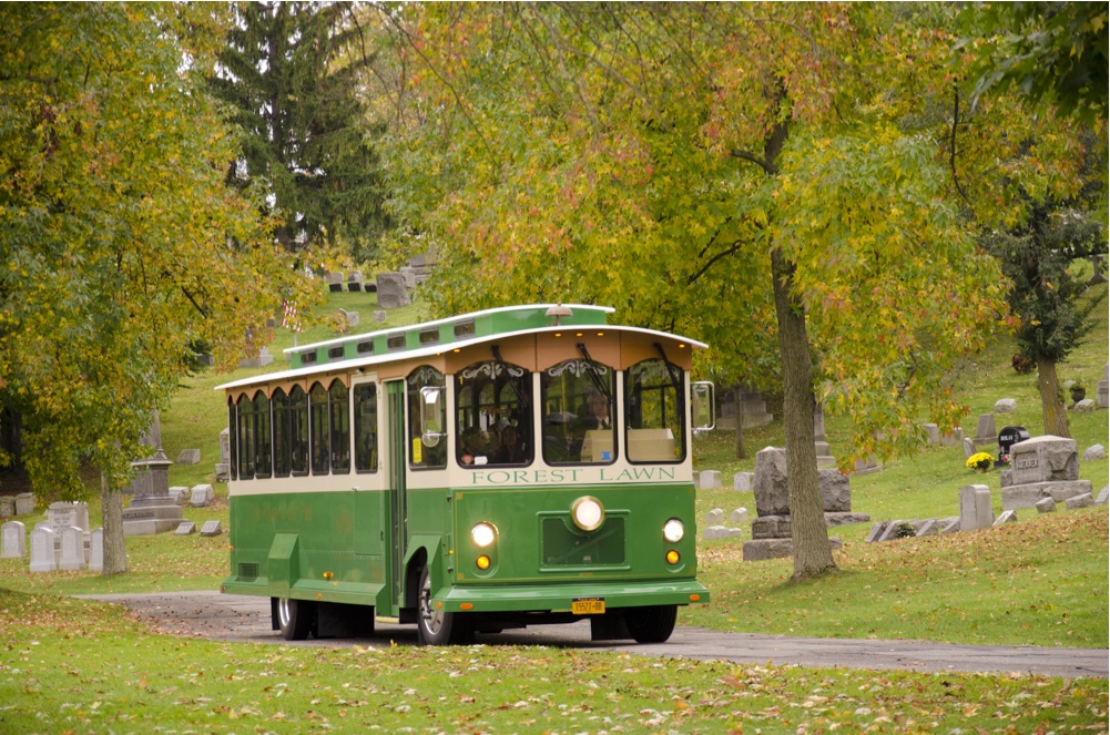 With fall foliage at its peak in the city, there may be no better time to explore the beautiful landscaped grounds of the city’s largest cemetery, Forest Lawn. Founded in 1849, the bucolic 269-acre grounds are an oasis for exploring Buffalo’s past and learning about individuals whose impact extends well beyond the city limits. A stroll through the cemetery takes visitors through hills, valleys, lakes and bridges. Statues, sculptures and fountains adorn the pathways. And at the heart of the grounds, there are endless stories from its permanent residents.