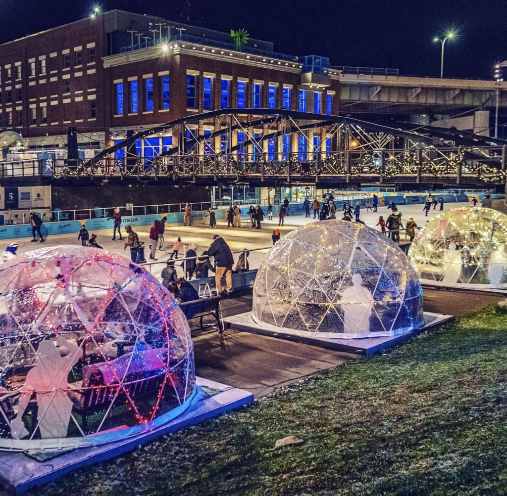 Warm up and get cozy in one of Canalside’s heated, transparent geodesic igloos! Located adjacent to The Ice, these igloos can accommodate up to 8 individuals and are available to rent throughout the winter season. Each booking includes 90 minutes in an exclusive heated space, admission and skate rentals for up to 8 skaters and complimentary hot cocoa. Learn more and reserve your own igloo experience here.