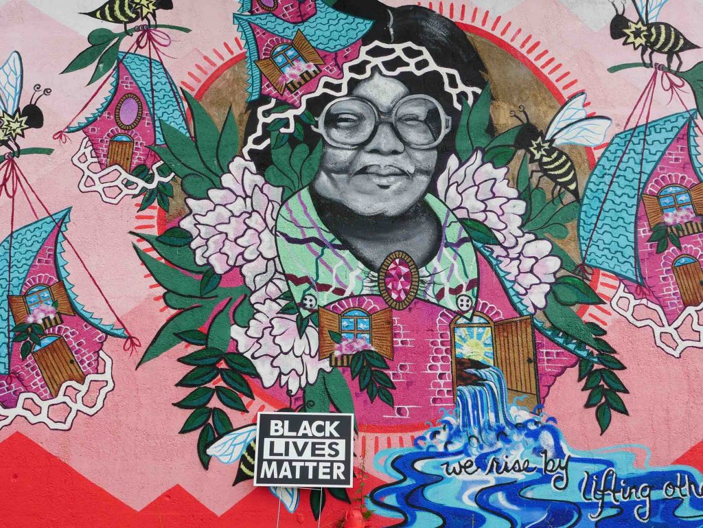 Located on the site of the former Buffalo Forge plant, the Forge on Broadway is a mixed-use complex that features a massive new mural by local artist Julia Bottoms. Bottoms was hired to create a tribute to the site’s industrial heritage as well as Dr. Rhonda Ricks, a civic champion of affordable housing.