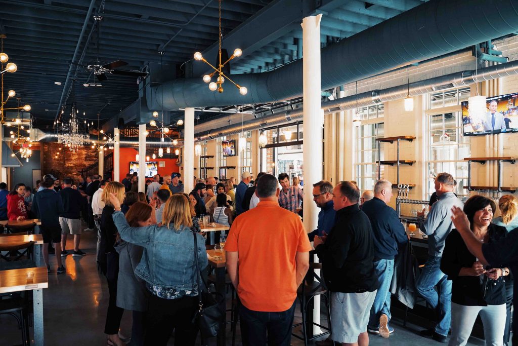 Now, if you thought this blog was over, it’s not. Because the only thing better than one re-developed building is TWO redeveloped buildings, and this adventure oasis happens to sit right next to Resurgence Brewing’s tap room. You can literally see the bar from CRG’s rock walls. So, once you’re done living out your wildest Free Solo dreams you can head across the shared open-air corridor to re-fuel with a bite and a brew. There’s a full menu of sandwiches, like Buffalo’s classic beef on weck, and shareables complete with a sponge candy stout beer float for dessert. Chow down in the dining area or right out on the brewery floor next to a row of towering stainless-steel fermenting tanks.