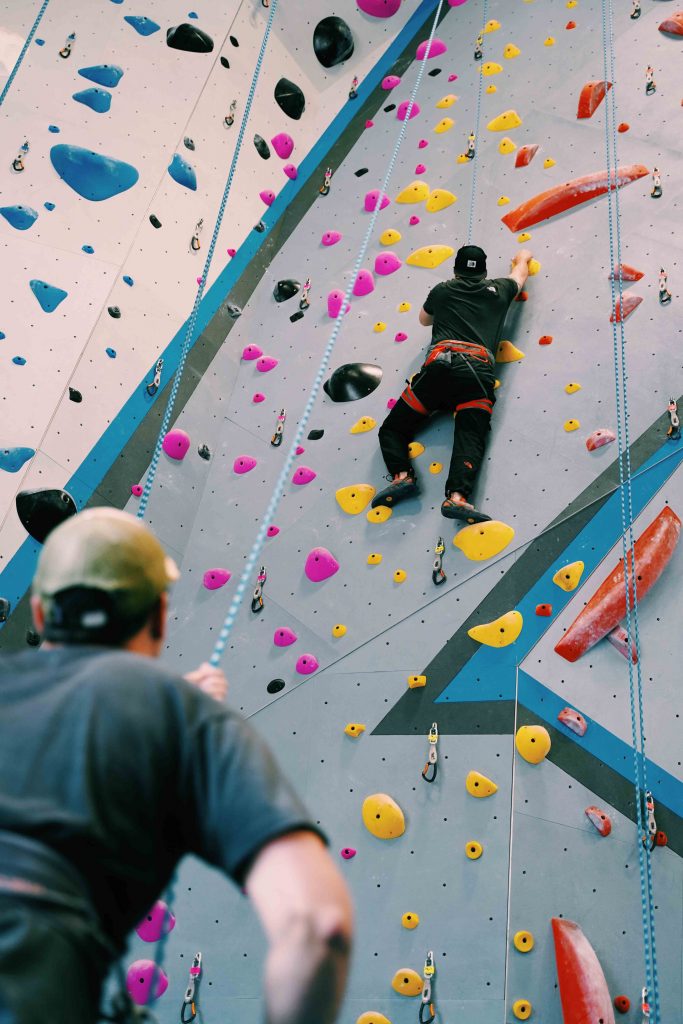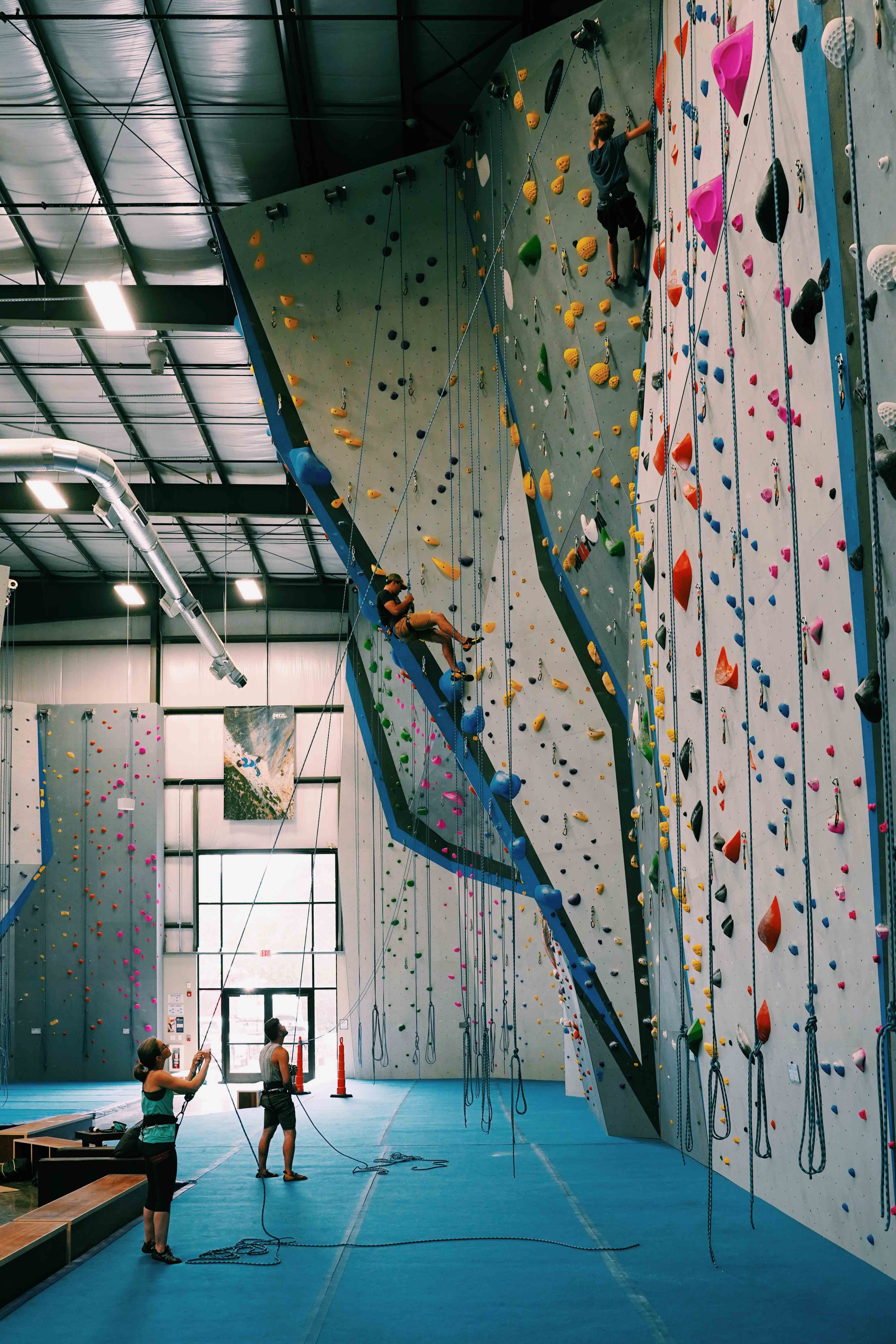 The space itself is huge. 22,000 square feet is dedicated to climbing and the walls stretch 45 feet to the top. Bouldering, top rope, and lead climbs are all available in the facility and routes are changed on a very regular basis. They’re set by a master routesetter and graded using the Yosemite Decimal System (climbing) and the V Scale (bouldering). Don’t let the technical talk scare you. The gym is super beginner friendly. You can rent all the gear you need right down to the climbing shoes, and once you’re properly kitted out the staff will teach you the knots and techniques to safely belay your partner. After that you’re free to climb to your heart’s content. There are so many routes and features you’ll never get bored.