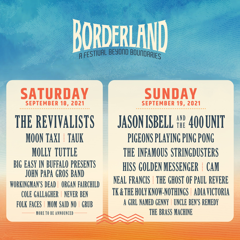 Well, needless to say the past lineups have been awesome, and year three will be no different. Despite the uncertainty for concerts, the Borderland Festival organizers have managed to pull together an amazing offering of amenities and experiences for festival goers – but also a supreme list of bands. I’m stoked that The Revivalists are coming back and headlining Saturday night, but man, does the Sunday line up pack a punch. I especially can’t wait to see Jason Isbell as well as the Pigeons Playing Ping Pong!