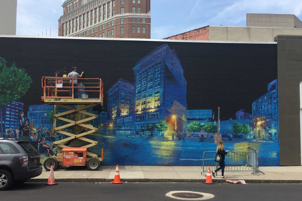 Buffalo has been developing one of the most dynamic public art experiences in North America, with some of the world’s greatest muralists creating work that is transforming the streets of the city. Working under the auspices of the Buffalo AKG’s Public Art Initiative renowned artists such as Shantell Martin, Eduardo Kobra, Felipe Pantone, Logan Hicks, Tavar Zawacki and Louise Jones, among many others, have come to Buffalo to make some of largest – and greatest – work of their careers. In summer 2023, legendary street artist Futura painted a mural in Buffalo’s Elmwood Village.