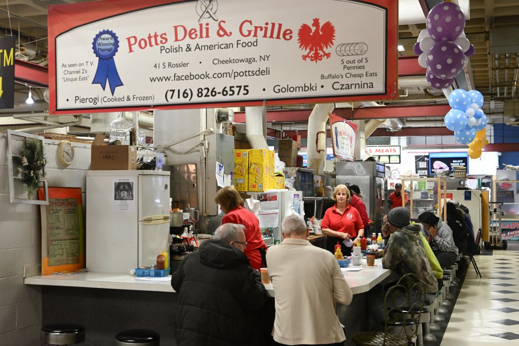 Right inside the Broadway entrance, Babcia’s serves dozens of pierogi varieties. Owner Linda Ziolkowski Lund began Babcia’s (the word grandmother in Polish) nearly a decade ago using her grandmother’s recipes. From traditional flavors (cheese, potato, sauerkraut, and mushroom), Linda expanded into varieties pleasing to true Buffalo palates like beef on weck, the “pizza-rogi”, and Buffalo wing. She sells up to 350,000 pierogi each Easter season.