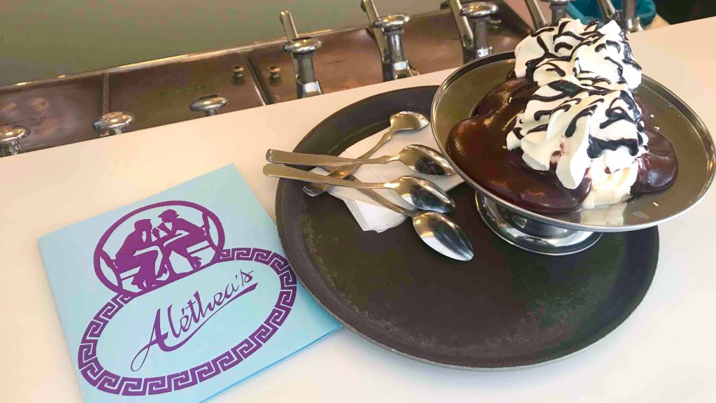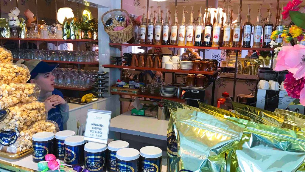 Fast forward to today, those types of confectioner shops sure can be hard to find. But Aléthea’s Ice Cream Parlour and Candy Shop at 8301 Main Street allows for that rewind to the good old days.