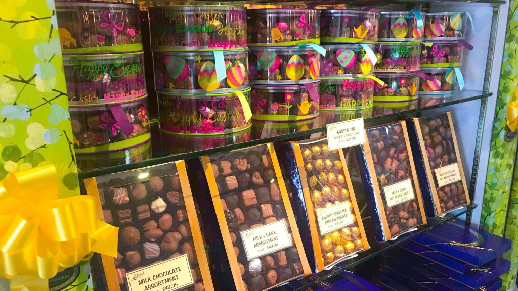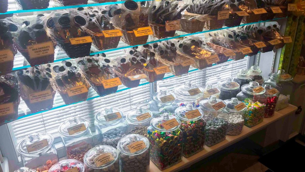 From there, awaiting you in the candy shop will be a wide variety of their specialty sponge candy, fudge, truffles, assorted chocolate, ribbon candy, and seemingly a chocolate mold for every interest, hobby, animal or religious belief await you on the left.