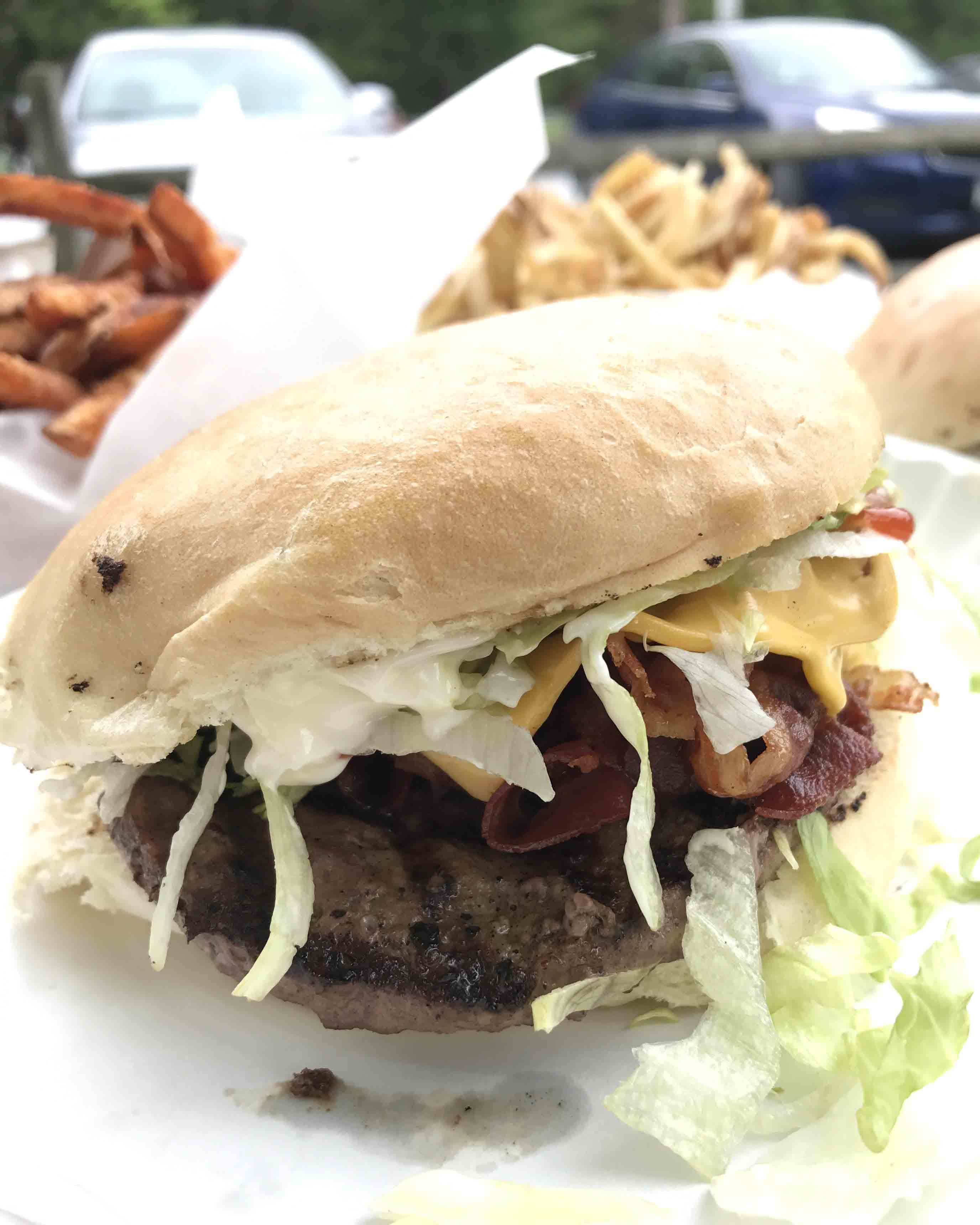 On a recent visit on a sunny Sunday afternoon, about half the tables outside were filled, with a steady stream of customers. That’s nothing, according to Nancy—on a sunny day, the line can go out the door and people pull up a comfy patch of grass when the table seating runs out. There are two playground sets onsite for the kids—just one more thing that makes George’s a family-friendly summer oasis.