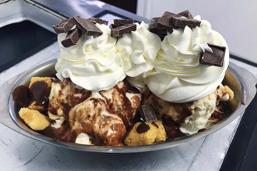 Popular sellers are the sponge candy, melt-away fudge, and “Buffalo Chips” – potato chips covered in peanut butter and chocolate. The brave of heart can test their stomach on the “Kitchen Sink,” a literal sink filled with 16 scoops of the flavor of your choice.