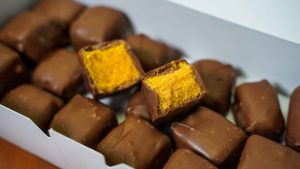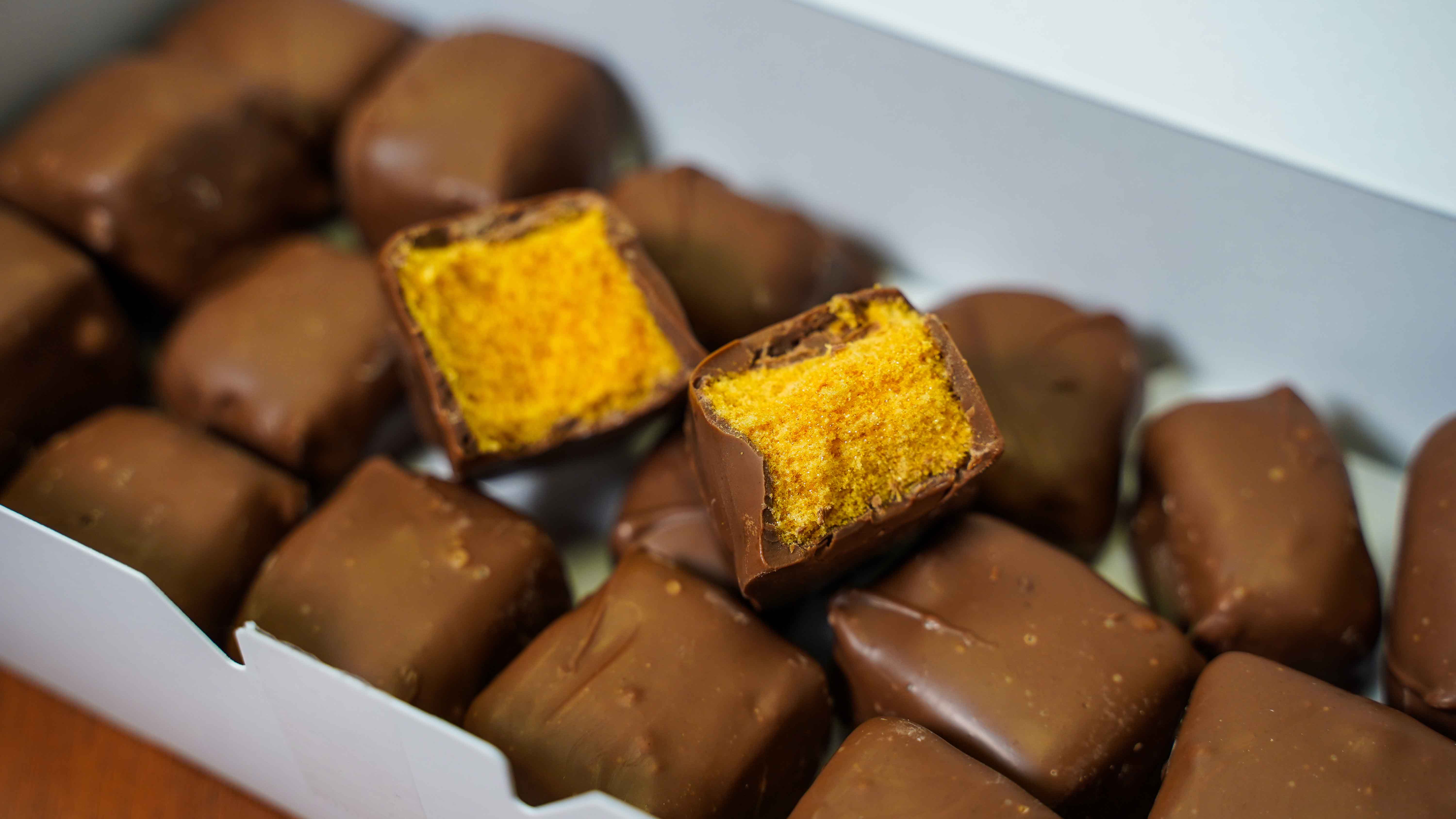 Of course you can find a wide array of non-sponge candy and chocolates at Mike’s. Some favorites are the Charlie Chaplin (homemade, fluffy marshmallow with coconut and cashew) and the Stolen Haven (homemade marshmallow blocks covered in milk chocolate and topped with chopped walnuts).