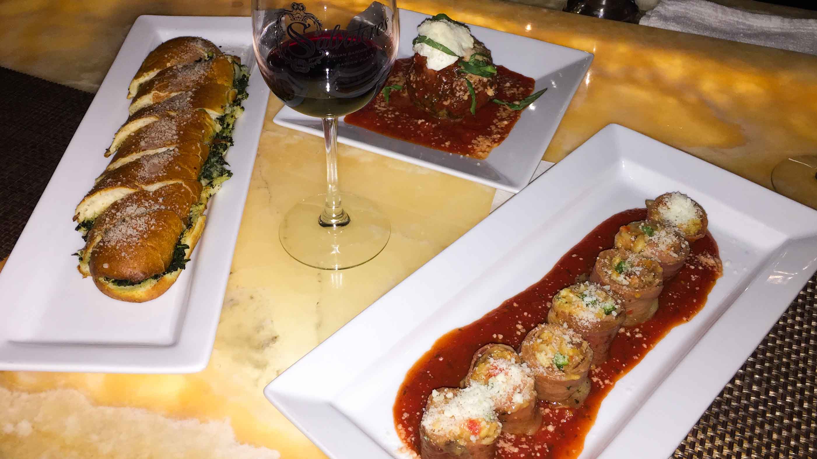 I’d also venture to say you wouldn’t think of Salvatore’s as the place to head to for a night of wine tasting and small plate samplings at the bar – but you should. The last time I was there I cozied myself up at the Chandelier Bar, ordered a great red wine and had the new “Salvatore’s Roll.” Served on a long plate with a sushi-like presentation, this compilation of orzo, pancetta, asparagus, mozzarella and chicken, wrapped with prosciutto and topped with red sauce, absolutely blew my mind.