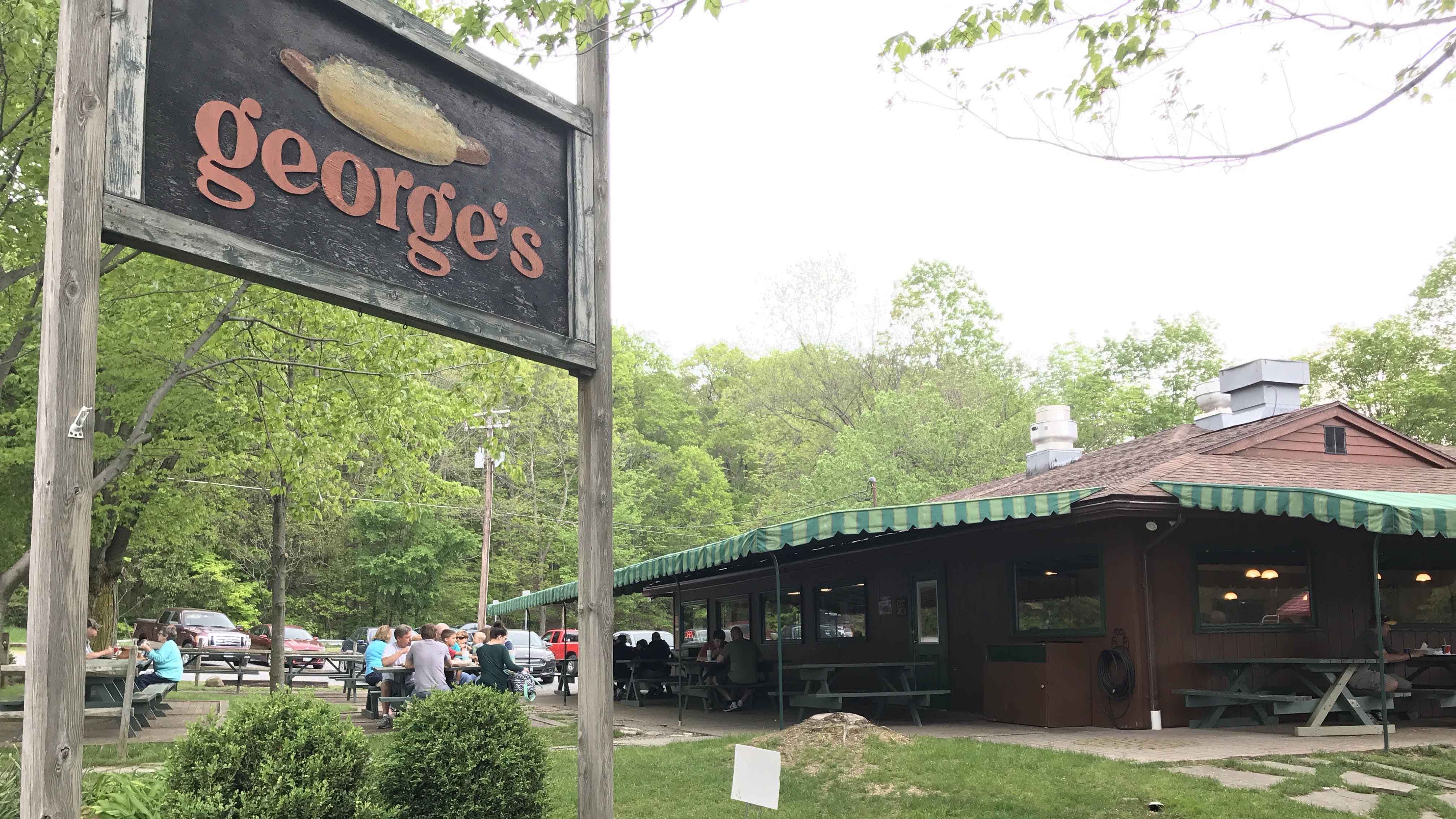 Located in Boston, NY a bit south of Chestnut Ridge Park, George’s has been cranking out hot dogs to loyal customers since 1967. A favorite summer dinner location for many families in the Southtowns, George’s has pretty standard run of the mill hot dog stand offerings. Hot dogs, hamburgers, curly-q fries (a must order, they are fresh cut and perfectly crisp) and milkshakes join chicken sandwiches, sausages and even some salads on their large overhead menu. While not groundbreaking, the food is consistently fresh and satisfying. Hotdogs and hamburgers are char-broiled, as many in Buffalo prefer, and the rolls are provided by another Buffalo staple, Costanzo’s. Condiments are of the standard variety; ketchup, mustard, onions and pickles. Be prepared to wait in line (and make sure you have cash), especially once soccer and little league is in session, but it’s worth it. After you order you move down the counter, watching your receipt fly down past your head on a zipline in front of you. Diners can eat inside at a few tables (which no one does) or at one of the many picnic tables surrounding the building outside. What makes George’s great is that it doesn’t pretend to be anything fancy. There are no bells and whistles. It’s a simple seasonal hot dog stand that offers consistently good summer comfort food. There are few things better on a warm July night than a hot dog and fries at a picnic table while you forget that winter even exists.