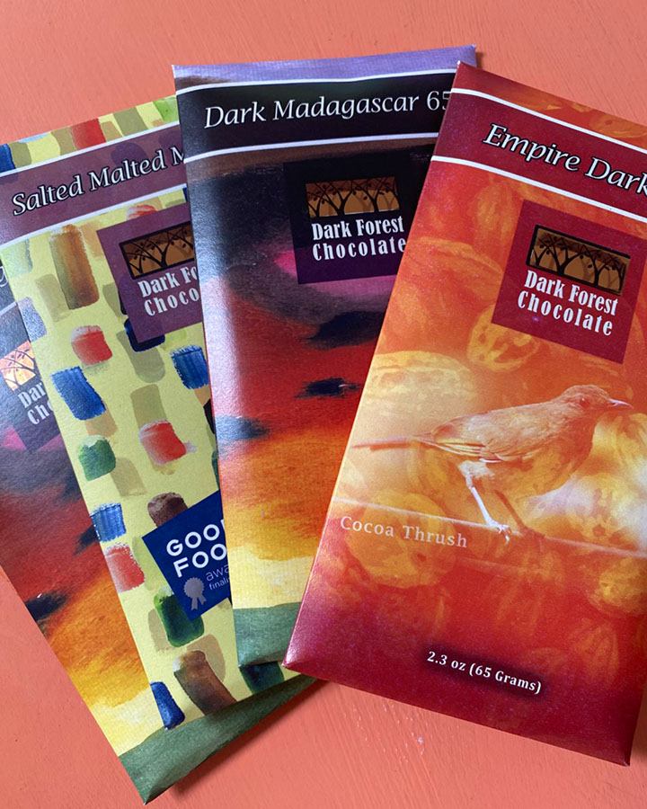 “I had never heard of Lancaster’s Dark Forest Chocolate Makers before receiving a few of their chocolate bars for Christmas last year. Lucky guy, right? So, I had no idea what I was about to experience as I unwrapped a delightfully decorated packet of Dark Madagascar 65% chocolate. I hope the chocolate’s as good as the art direction, I remember thinking. Then, the first bite and my mind raced, looking for the right words to describe the experience, and all I could come up with was, “Who are these guys?!” Well, JoAnne and Dan Sundell are small batch artisanal chocolatiers with a tiny shop in the heart of the village of Lancaster. The Sundells take chocolate seriously, sourcing the highest quality cacao from around the world, understanding the subtleties that its place of origin imparts, and being attentive to the conditions under which the beans they are purchasing are picked. Apparently, Dark Forest has been earning international awards for its chocolate for the last five years – unbeknownst to this chocolate lover who is now obsessed with their sophisticated, subtle, unforgettable locally-made chocolate. This Christmas, I know what I’ll what I’ll be giving to everyone on my list.”