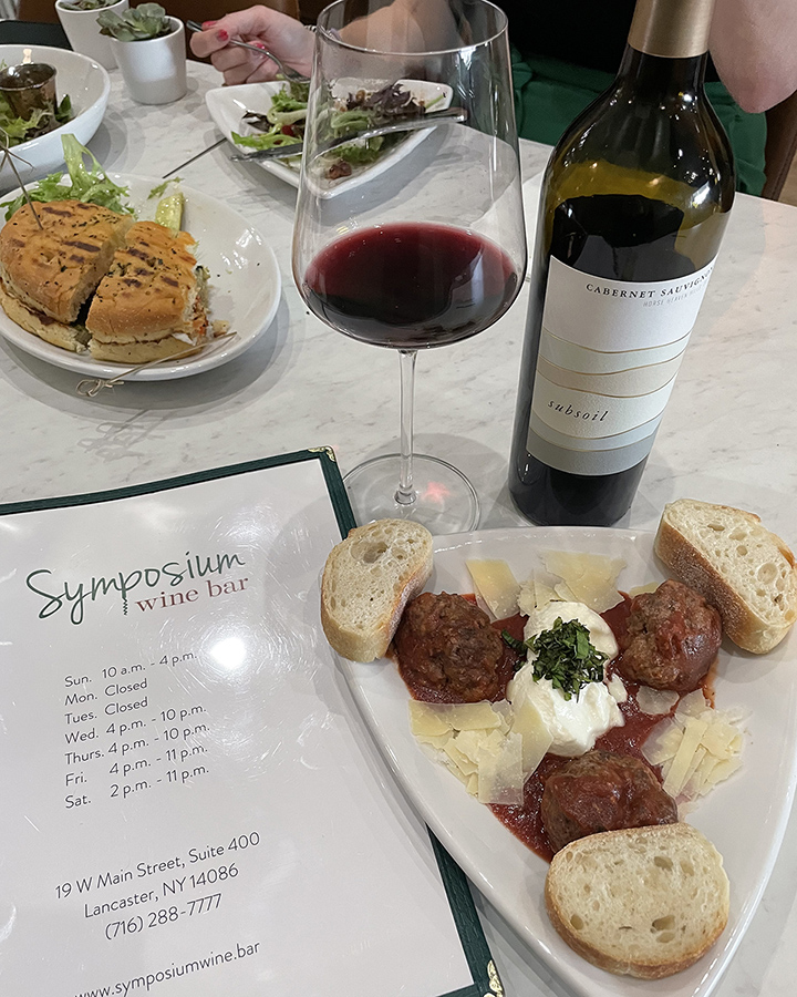 “Red sauce and meatballs. Order those at a restaurant? Never. That’s an unwritten rule in my Italian family. Fill up on the alfredo. Knock yourself out with the marsala. Indulge in the carbonara, but never the red sauce. Enter the ‘Meatballs & Ricotta’ from Symposium Wine Bar in the village of Lancaster. After 42 years, I broke the rule. Maybe my moment of weakness came as I sipped a glass of Symposium’s Washington Cabernet or maybe my curiosity was piqued by the combination of warm sauce-covered meatballs and cool, creamy ricotta. Either way, it happened and after one bite, regret didn’t even cross my mind. The beef/pork blend makes for a tender and flavorful meatball. The marinara is bright and fresh. The ricotta is as smooth and decadent as it can get, and the shaved parmesan adds a sharp, salty note. One combined spoonful of the four and I guarantee you’re “ossessionata.” Sorry not sorry, Nonna.”