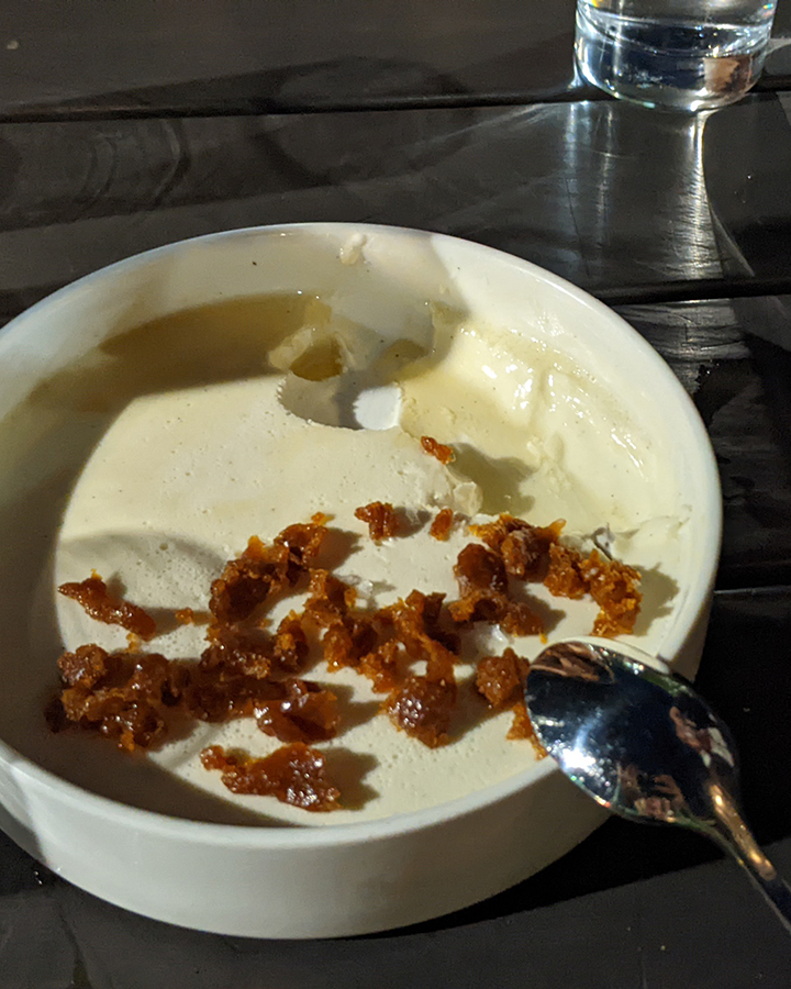 ‘Oh my god, it’s delicious!!’ When pressed for more detail, she elaborated. ‘I think it’s this surprising combination of sweet and tart. It’s got this silky-smooth sweetness.’ And then there’s that secret tang. This version of the famous cold Italian custard is lemony yet so distinct, in an addicting, I-want-another-bite way, that there’s a mystery. Could there be something besides citrus stirred in?”