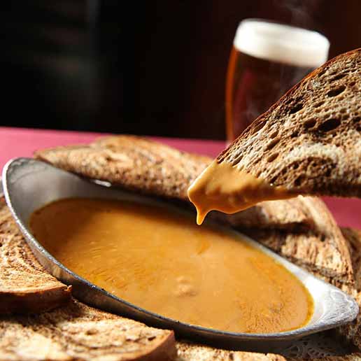 The Welsh Rarebit—advertised as a recipe passed down for generations—turned out to be a delicious, savory dip of rich cheese cut with ale, presented boiling hot and surrounded by toast triangles for dipping. Though the menu declares this item perfect for sharing, I needed no help in demolishing my toast allotment and craving more.