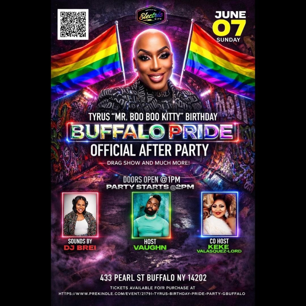 TYRUS "MR.BOOBOO KITTY" BIRTHDAY BUFFALO PRIDE OFFICIAL AFTER PARTY DJ: BREI Hosts: VAUGHN and Keke Valasquez-Lord Drag Show and much more! Doors open 1pm | Show starts 2pm