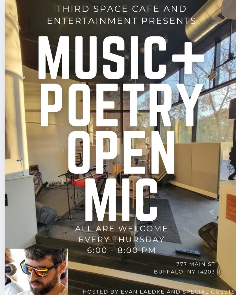 All are welcome to Music + Poetry Open Mic at Third Space Cafe every Thursday night. Hosted by Evan Laedke and Special Guests