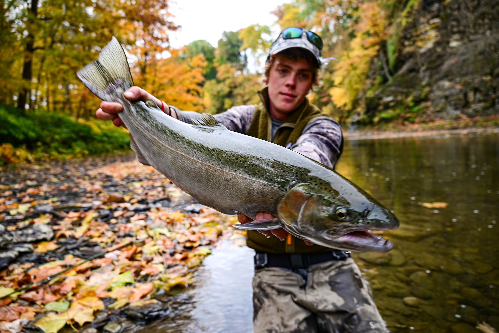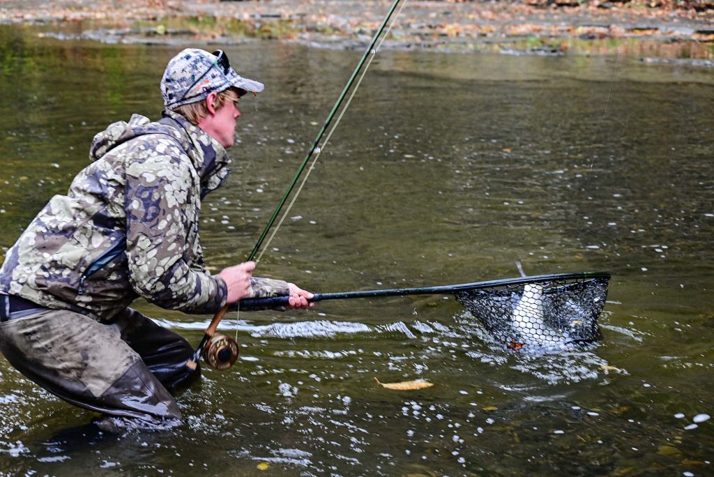 First things first: “What is a steelhead trout?” A steelhead trout is a species of rainbow trout that lives part of its life in open water – in this case Lake Erie. The trout migrate to the colder depths of Lake Erie in the spring before the creeks and streams heat up in the summer and then move back to the well oxygenated moving water in the fall to spawn and spend their winter. This back-and-forth migration is called a run and is the best time to cast a line.