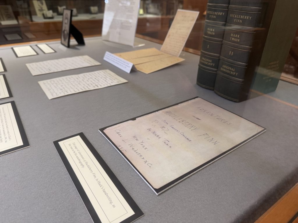 The collection’s unrivaled centerpiece sits in the middle of the room: the original manuscript of the Adventures of Huckleberry Finn, displayed two pages at a time inside a glass case. The manuscript first arrived in Buffalo nearly 140 years ago. Back then, leadership at Buffalo’s Young Men’s Association, the library’s precursor, contacted a series of American authors and requested they send original manuscripts of their work to Buffalo’s growing collection. Twain happily obliged to curator James Gluck’s request and mailed half of the Huck Finn manuscript to our city soon after its completion in 1885, believing that the other half had been destroyed.