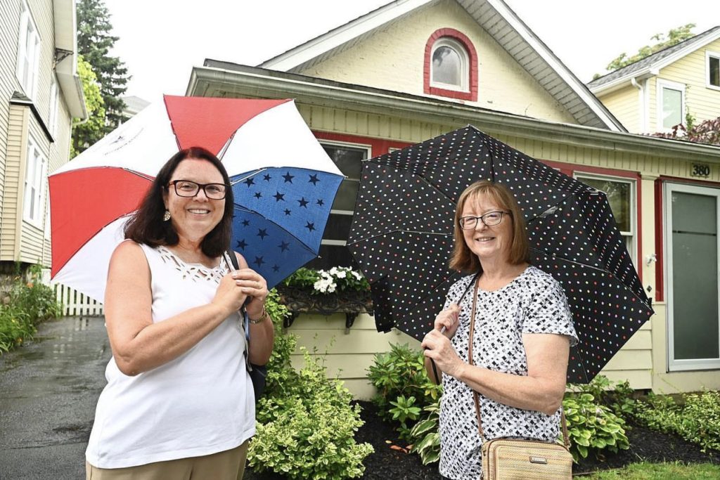 Friends and fellow gardeners Sharon C. and Sharon S. drove six hours from their hometown of Reading, PA, to visit @gardensbuffaloniagara’s Garden Walk Buffalo on the event’s first day with some bonus sightseeing during their trip. It was a rainy day, but Sharon and Sharon were happy the day was cool. “Yesterday we took a tour of Frank Lloyd Wright houses, both @flwgraycliff and @themartinhouse,” says Sharon 2, adding, “I preferred the Martin House, and the gardens!” “I found Graycliff more livable,” says Sharon 1, “and the view of the lake was gorgeous.” “We’re loving Garden Walk,” says Sharon 2. “We figured two days was perfect, but two days might not even cut it, it’s so big.” “I learned about Garden Walk during one of my master gardener classes,” says Sharon 1. “One of the instructors had photos from Buffalo’s Garden Walk for her lecture on planning and mapping out gardens.”