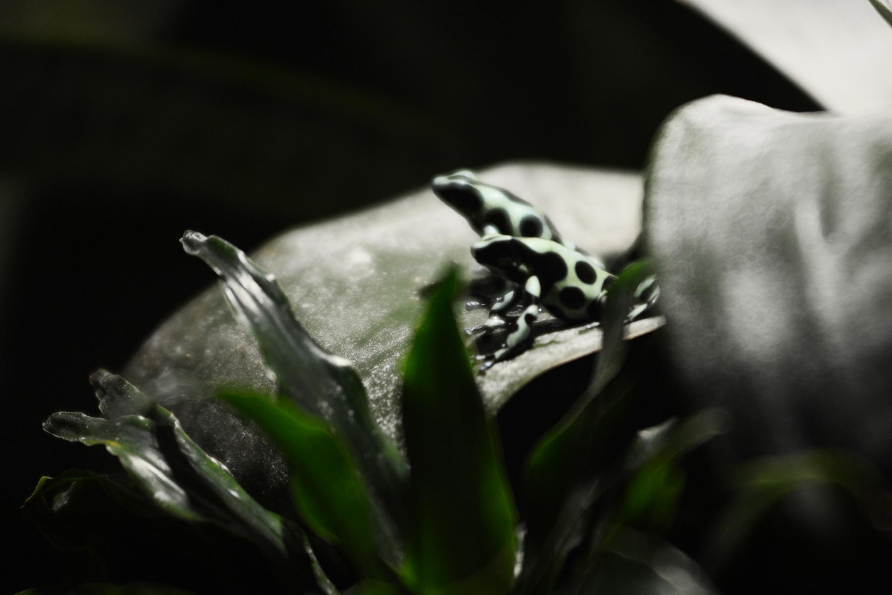 Astute visitors to Buffalo Zoo will note that there is not one – but three – exhibits of these glistening bright green and black frogs. They are very still and they’re one of the amphibians that are extremely good (despite that bright green) of blending into their habitats that includes lush plants.