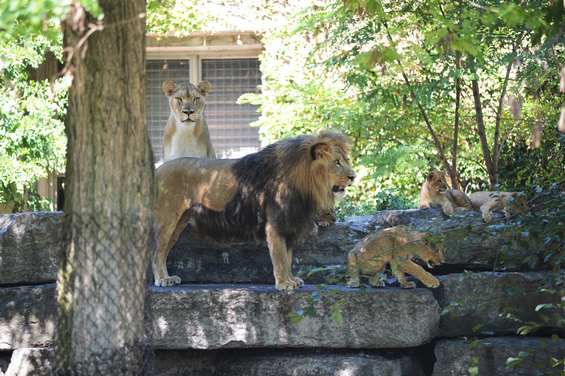 The lions at Buffalo Zoo exist in their habitat in a pride and they are very vocal in their space. It’s not uncommon to hear their roars while walking around the Zoo. Mama lion, Lusaka, and papa lion, Tiberius gave birth to a trio of lion cubs in recent years. Lions (Panthera leo) are dubbed “big cats” as they are one of the largest species of felines.