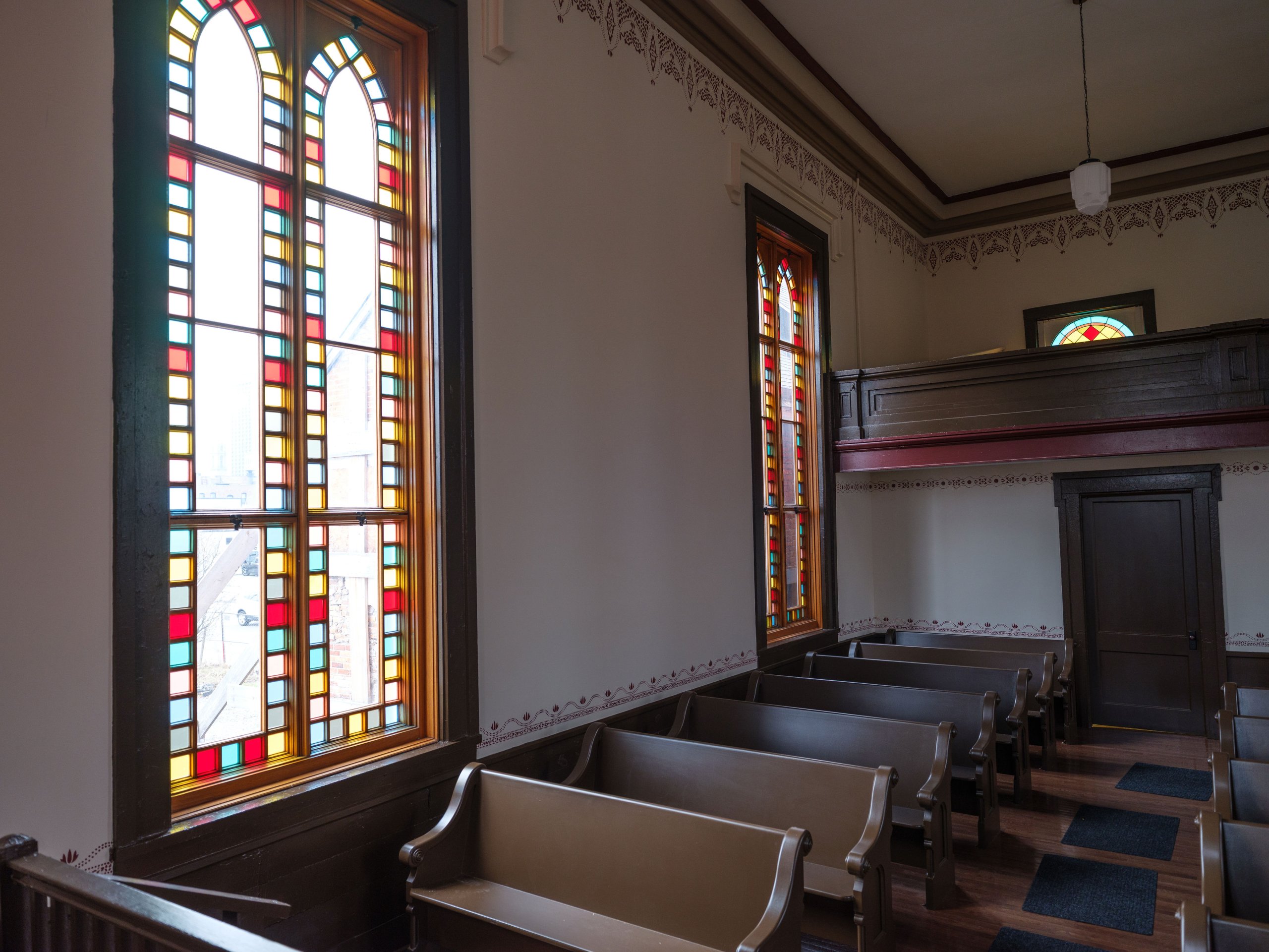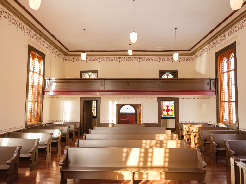 The four-year, $1.9 million renovation project, completed in 2025, shored up the church foundation, added pews copied from originals and painstakingly recreated a crimson stencil pattern that was discovered. Original details like the door handles, the steps leading to the balcony and the original church design are intact. Plans include adding a new adjoining building to allow for handicap access and to showcase finds from an ongoing archeological dig.