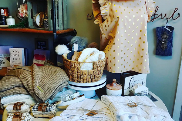 An imaginative storefront showcasing a variety of hand-picked clothing, accessories, home décor, and other products.