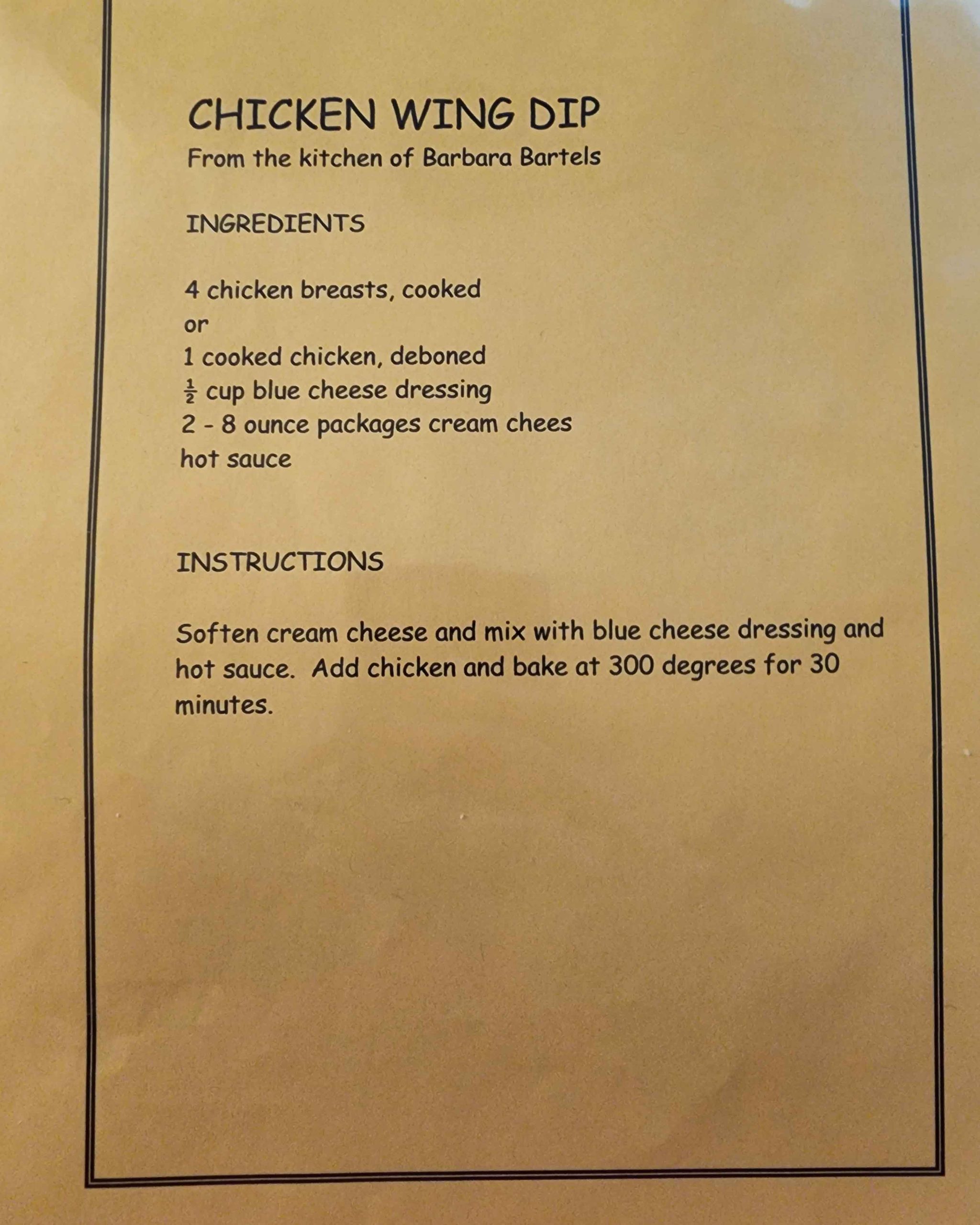 As a bonus, Julianne asked for us to share her chicken wing dip recipe. Enjoy!