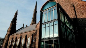 Continuing north on Delaware you’ll cross Tupper Street and immediately come upon Trinity Church. Trinity is known for its breathtaking collection of stained glass windows. It is one of only two places in the world where the work of John LaFarge and Louis Comfort Tiffany, two world-renowned art glass pioneers, sit side by side. Trinity Church is home to five Tiffany windows and ten superb works by LaFarge.