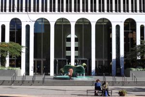 Turn left on Swan Street and you’ll see Sahlen Field, home of the Buffalo Bisons. Walk to the corner of Swan and Ellicott Street, where you’ll see the Old Post Office (O’Rourke, Aiken and Taylor, 1894-1901), which now serves as the city campus for Erie Community College and features a spectacular atrium.
