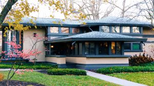 Walk two blocks on Colvin before making a left on Tillinghast Avenue. You’re now in the Park Meadow neighborhood and on one of Buffalo’s loveliest and most stylistically eclectic streets. Mid-way down the block at no. 57, you’ll come to another Frank Lloyd Wright-designed residence, the Walter V. Davidson House. Built in 1908, shortly after the completion of the Martin House, the Davidson is more modest than its predecessor, but still distinctively from the drawing board of Wright during his Prairie period. The Davidson House is privately owned so please respect the owner’s privacy and stay on the sidewalk.