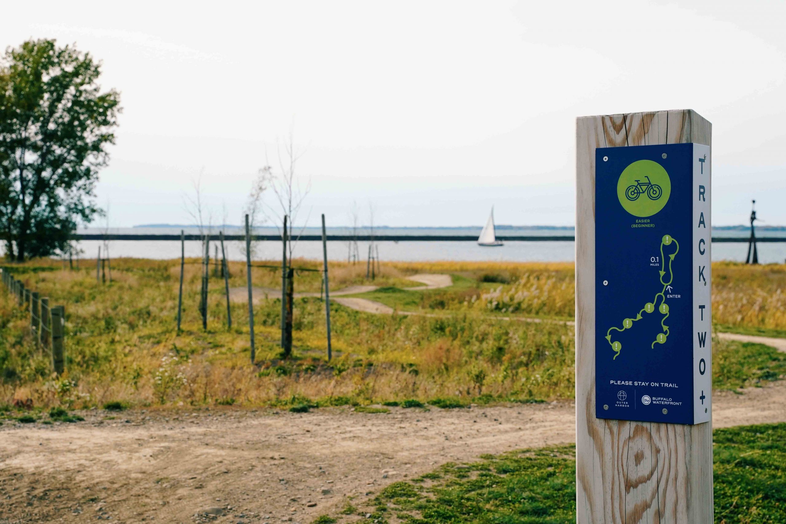 Today, Buffalo even has its own waterfront park dedicated entirely to the adventurous biker. Meet, Lakeside Bike Park. Located on the Buffalo Outer Harbor, about one mile south of Wilkeson Pointe near the Bell Slip, Lakeside Bike Park opened to the public in 2019. This 20-acre plot of prime waterfront real estate has been restored and transformed by the Erie Canal Harbor Development Corporation into a five-track biking destination for riders of all ages, skill levels and terrain preferences.