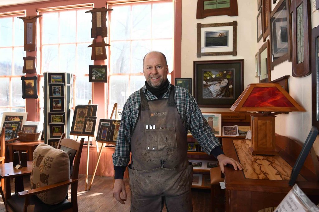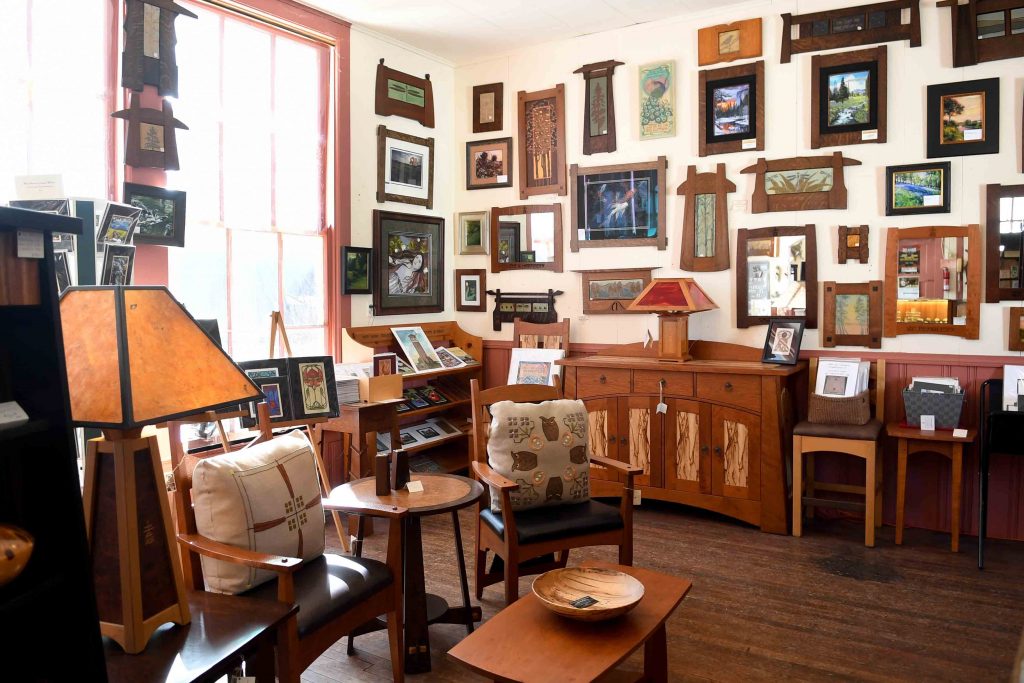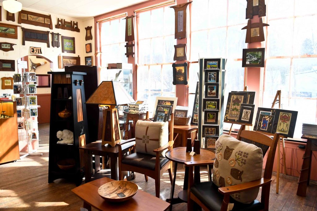 A sign on the shop door says that if it’s locked to go the studio of Roycrofter Thomas Pafk out back; he’s one of two artists manning the space, the other being Ben Little. It was another Roycroft Artisan, Tom Harris (a woodworker), who purchased the property in 1984 with plans of converting it into his woodshop – before seeing a need and creating the shop/gallery.
