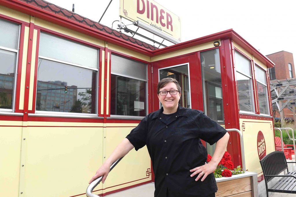 At the wheel of Swan Street Diner is Amanda Amico, general manager and cook. Amanda says “I run kitchens and cook all day. I got my start twenty years ago at Amy’s Place on Main Street, then I owned the Amy’s Place food truck, a separate business that started in 2012 and may rise again (it’s on hiatus, and parked behind Swan Street Diner), but I’m very busy – I’m a short-order cook here and at home for my kids.