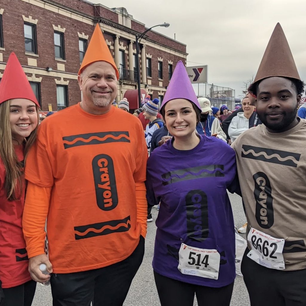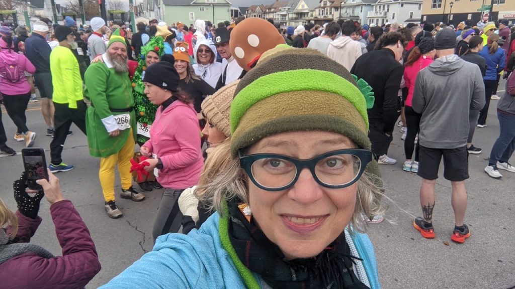 For at least 14,000 people, Thanksgiving in Buffalo starts in the morning with the Turkey Trot, the nation’s oldest, continuous road race, with runners and walkers coalescing into a costumed mass at the old brick YMCA Buffalo Niagara headquarters on Delaware Avenue. Holding paper cups of coffee that double as handwarmers, they wait for the pop of the 9 a.m. start gun in running gear, turkey hats, turkey socks, orange tutus, and fully costumed as turkeys, pilgrims, Santa Claus, elves and Christmas trees.