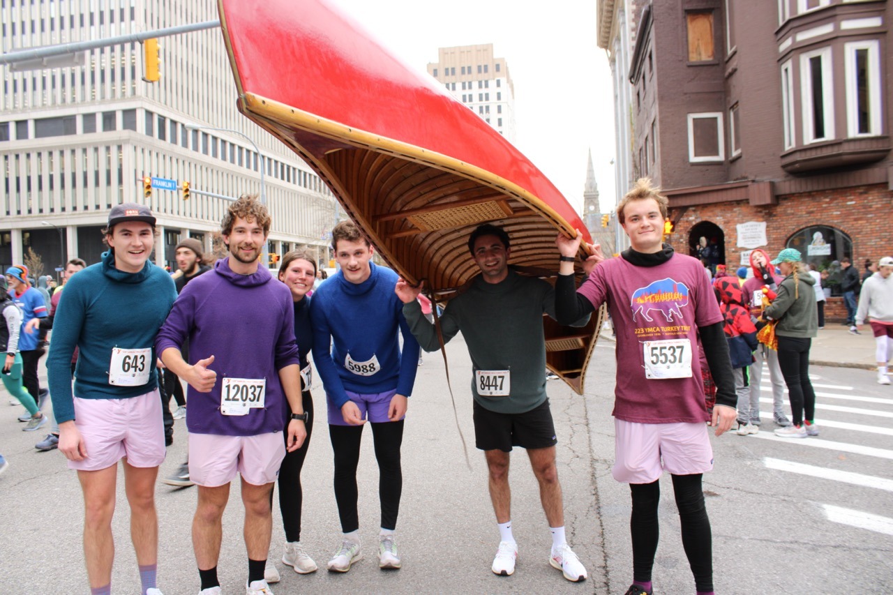 Altogether the Turkey Trot elements are a motivating mix. “It’s a sense of accomplishment afterwards that that comes with doing it and leaning into the discomfort of carrying a 70-pound canoe for five miles,” said Michael Szymkowiak. “To be a small part of something that has run for as long as it’s run, and to show up, and people kind of get excited to see you — I mean, it’s hard not to want to keep coming back and participating in a race that is that historic.”