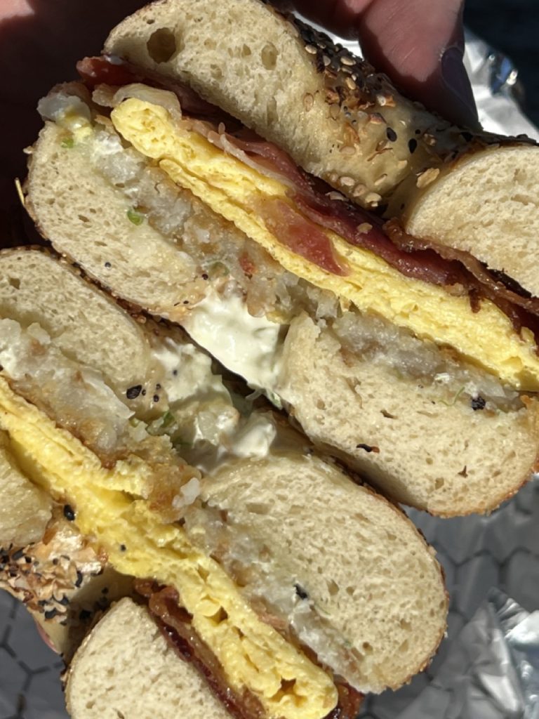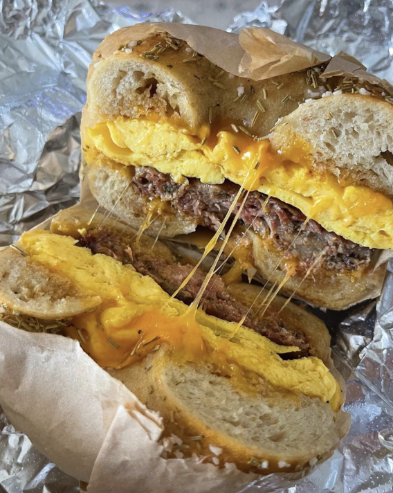 Owned and founded by Alex Robinson, Blue Eyed Baker has spent the past six years making a name for itself as one of Buffalos best bakeries. Over the past year, they’ve become known not only for their delicious pastries, but for their savory goods and breakfast sandwiches, too. Now, Blue Eyed Baker is making bagels every day. These bagels are hand shaped, and just like Blue Eyed Baker’s croissants, they’re HUGE. While they always have the classic bagel flavors, their jalapeno cheddar is a favorite of mine. If you like your bagels big and beautiful, Blue Eyed Baker has a bagel for you and some specialty cream cheese to pair with it. The best part? If you’re a bagel-lover like me, on Saturdays and Sundays you can get one of their delicious breakfast sandwiches on a bagel.