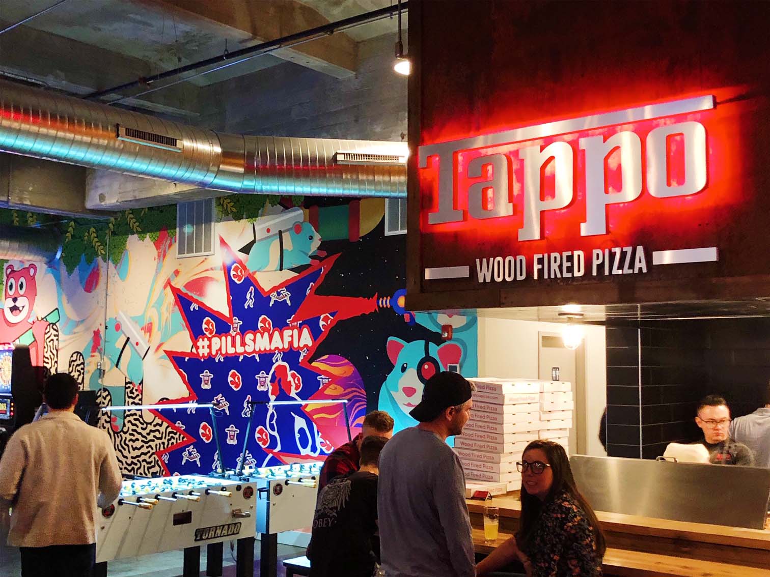 The space that houses the Tappo/Thin Man mashup has all the industrial features you’d expect from garage doors to exposed HVAC, but the vibe is anything but standard. The walls are covered with bright murals that are supremely ‘grammable, and the sound system provides low-key background music from the likes of Junior M.A.F.I.A. and Wu-Tang Clan. Dart boards, skee-ball and foosball tables round out the makings of a relaxed weekend hangout.  It’s meant to cater to a younger crowd, but it’s an all-ages sort of place frequented by residents of the surrounding neighborhood. And if you grew up in the 90s you’ll be right at home.