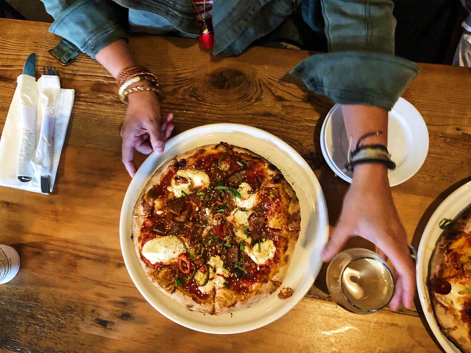 Thin Man brews on site and the bartenders pull suds from nine different tap handles. The list includes IPAs, brown ales, ciders, and their signature fan favorite Pills Mafia. Tappo compliments the beer selection perfectly with their wood-fired pizzas.  Like any respectable Buffalo bar you can get wings, but the pretzel bites are a must-order.