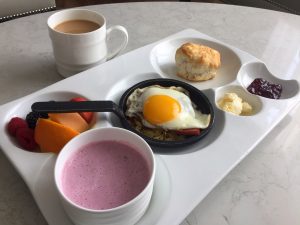 After a wonderful night sleep and a steaming hot shower with their Guild + Pepper products (side note, their bath products smelled amazing and gave my hair tons of volume) I had breakfast delivered to my room. They leave a card in your room so you can check what time you’d like breakfast delivered, what beverages you like (because coffee is a must, of course), and what you’d like to eat. They make your decision easy with their daily selection of a hot breakfast or you can order a la carte different things like fruit cups, toast, bacon, salmon, and eggs, just the way you like it. During my stay, the daily breakfast included a biscuit with butter and jam, fresh fruit, berry yogurt, and a hash with ham, rice, a fried egg, and savory sauce.