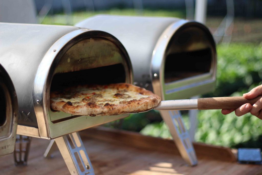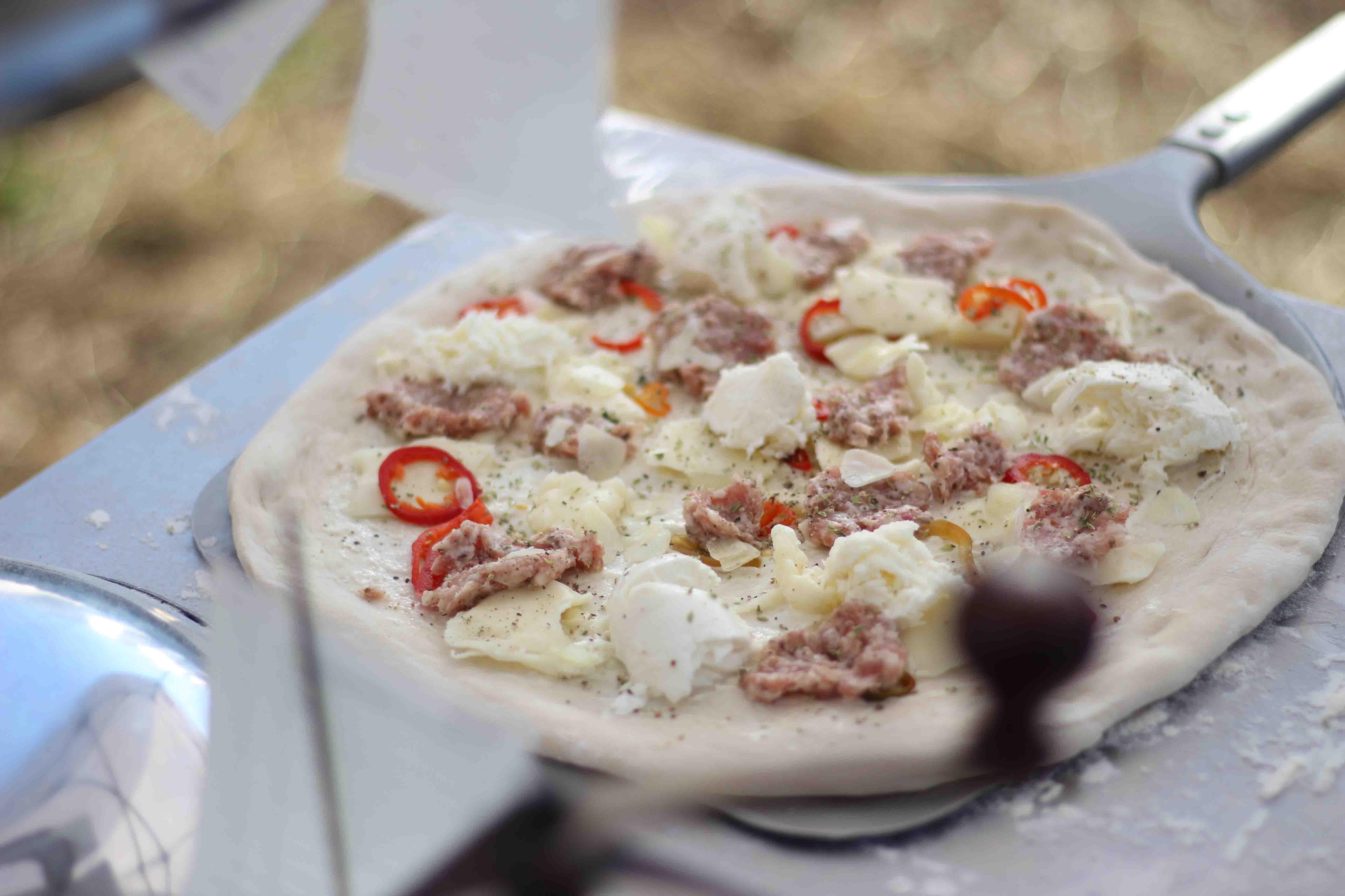 After about 5 minutes in their three Roccbox portable ovens, your pizza comes out to bubbly perfection – crisp with just the right amount of doughiness.
