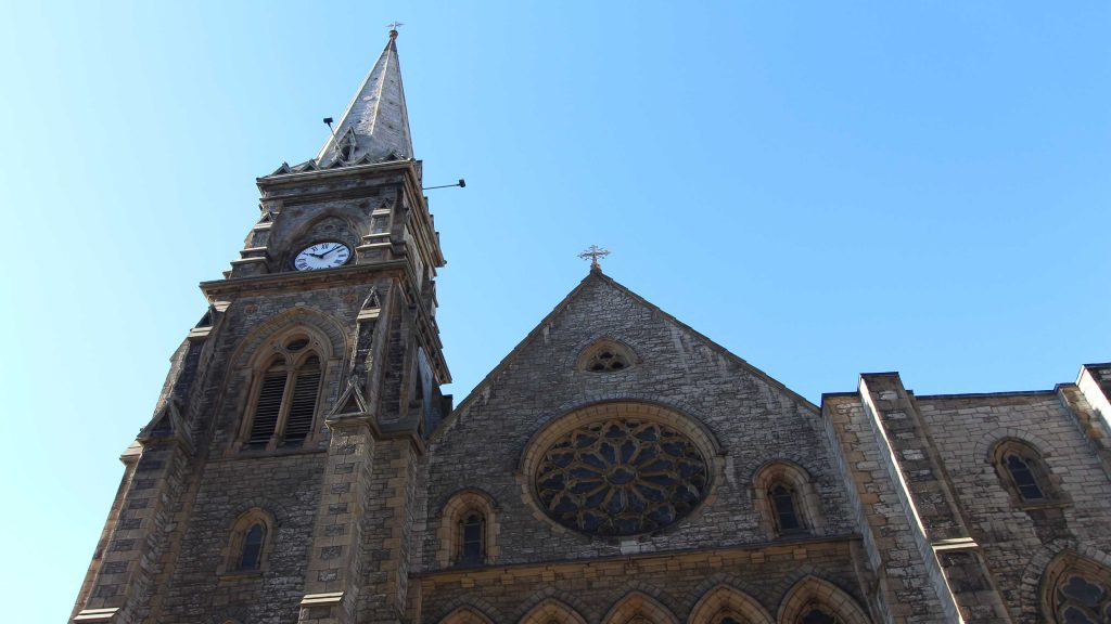 • Completed in 1863, the French Gothic church features a prominent entrance with three front doors known as a triple portal. Buildings in this style are typically symmetrical, but the cathedral lacks a second tower that was allegedly not constructed after running low on funds.