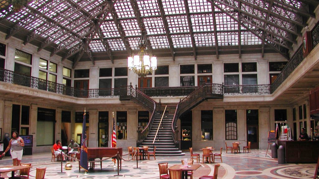 • The Richardsonian Romanesque construction was completed in 1901 and was illuminated by an abundance of natural light in the atrium and from dozens of seven watt light bulbs.
