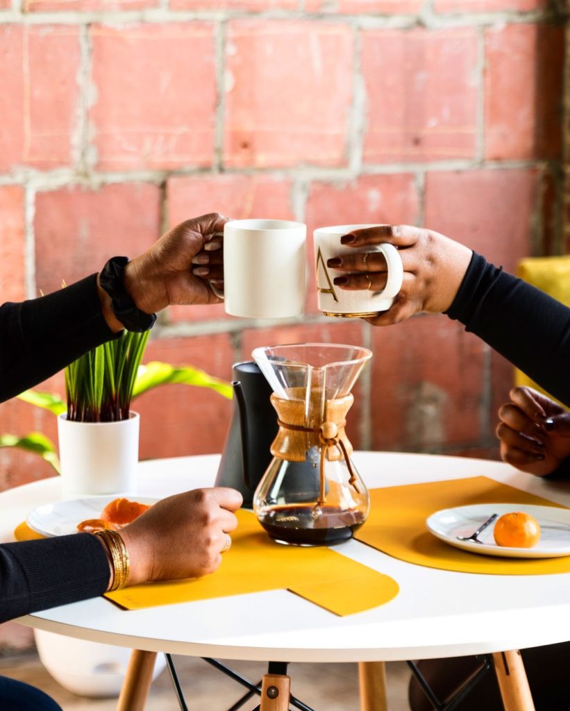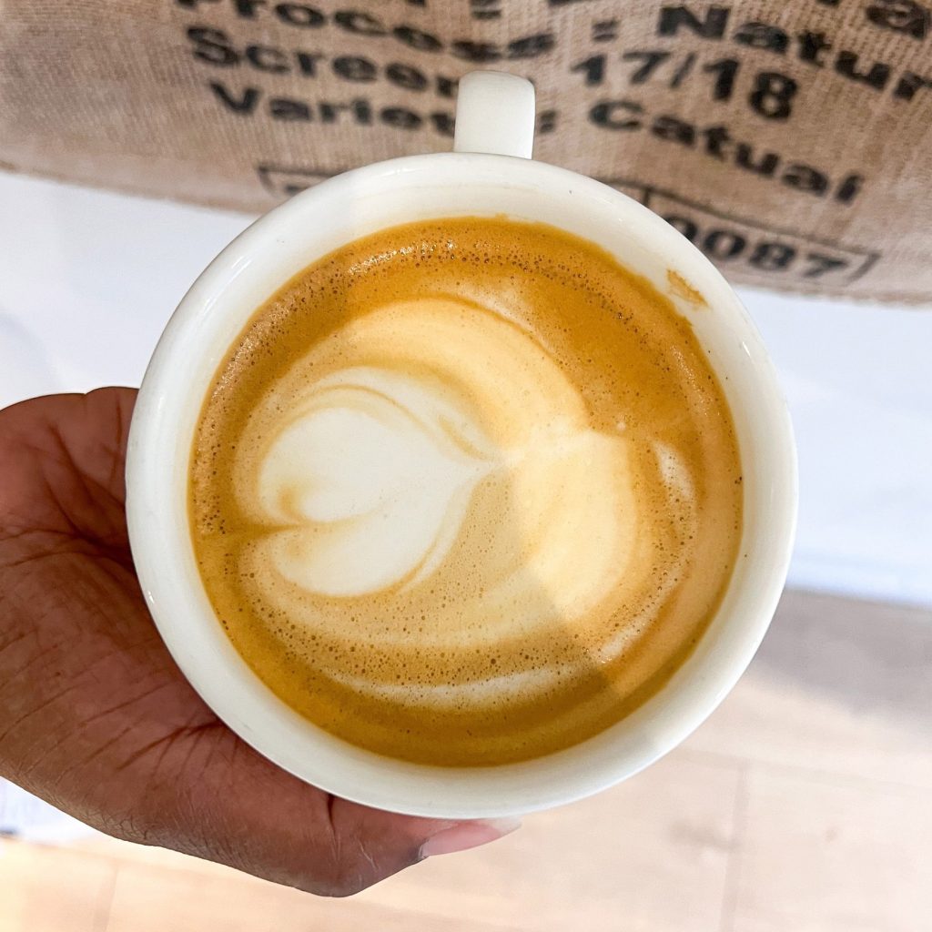 The proudly minority and women-owned company began as a small-batch roastery. “A café was not in the business plan, but one day when we had a tasting – we’d bought a sleeve of 50 paper coffee cups – and we were giving out coffee samples to family and friends,” Alisa says. “A few people from the church a few doors down came in and asked what we were doing, and then the Deacon came over and said he’d send the congregation over that Sunday to support us to buy coffee. Then the entire church flocked in.” There are peals of laughter: the in-person business of selling coffee by the cup and foil pouch had launched.