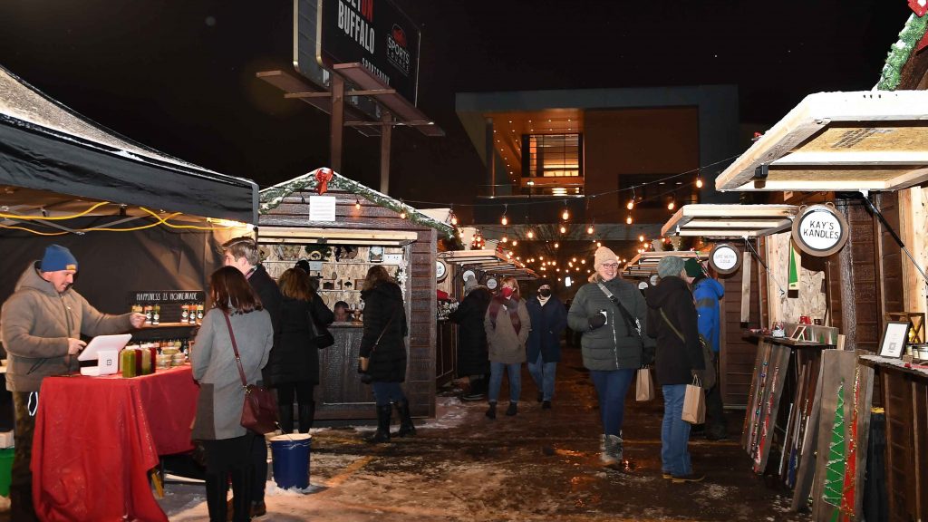 The co-owning ladies of Loaded Lumber, Colleen Pandy and Jillian Cannan, have created a free and festive Holiday Market for 2021 – and beyond. It’s an outdoor place of commerce and fun, an excellent addition to Buffalo’s holidayscape. Expect a rotating roster of local businesses populating the dozens of wooden sheds set up along two lanes.