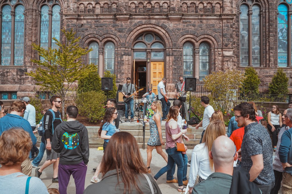 Buffalo started a trend when it held its first Porchfest in 2013. It began as a small festival with about a dozen bands and about six porches. Soon, this became the largest in the region. Now more than 200 bands play on more than 70 porches. Some of the bigger porches are more popular – like one on Elmwood Avenue near Bryant Street – because they can host more musicians. Buffalo Porchfest is always held on the third Saturday in May.
