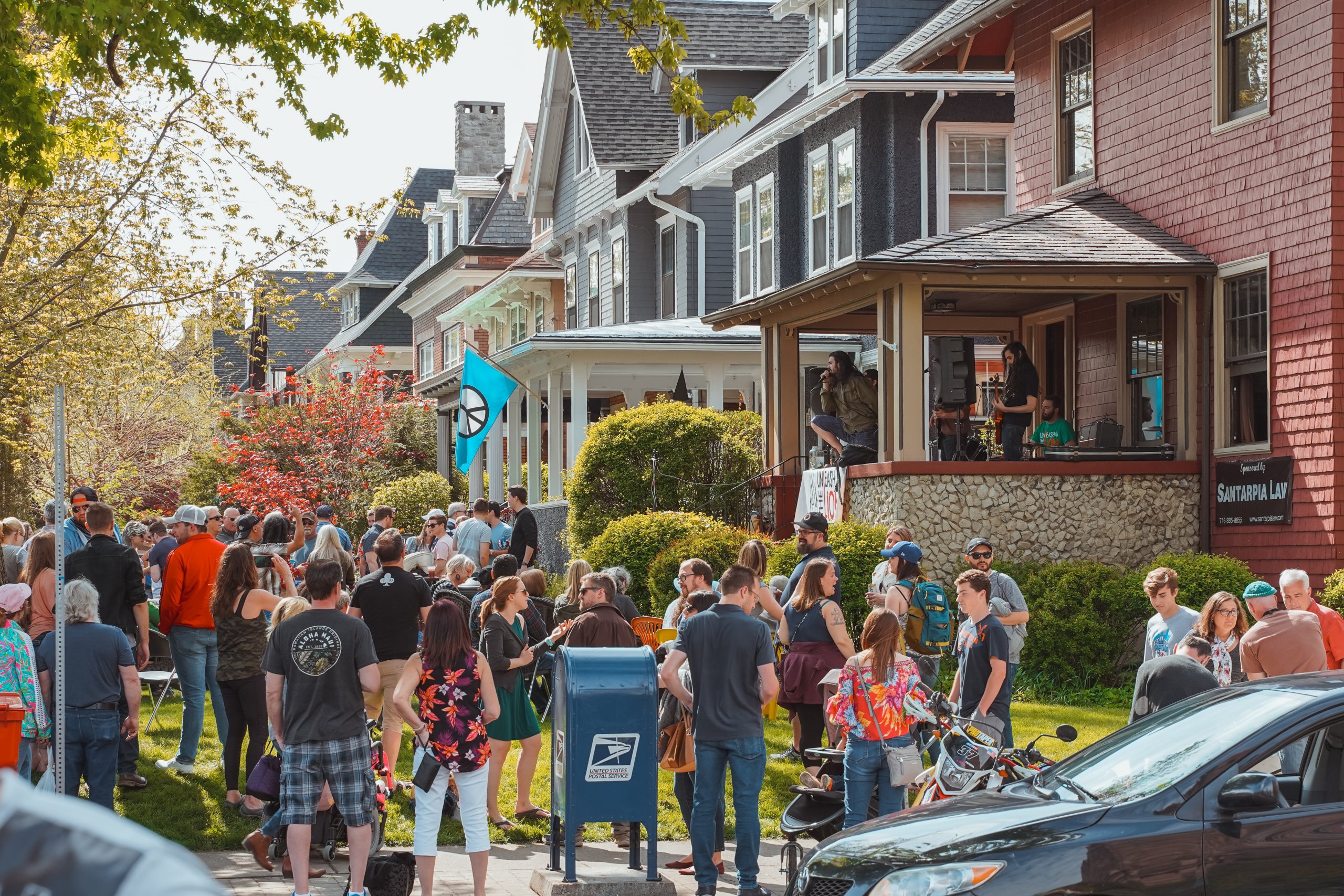 Buffalo started a trend when it held its first Porchfest in 2013. It began as a small festival with about a dozen bands and about six porches. Soon, this became the largest in the region. Now more than 200 bands play on more than 70 porches. Some of the bigger porches are more popular – like one on Elmwood Avenue near Bryant Street – because they can host more musicians. Buffalo Porchfest is always held on the third Saturday in May.